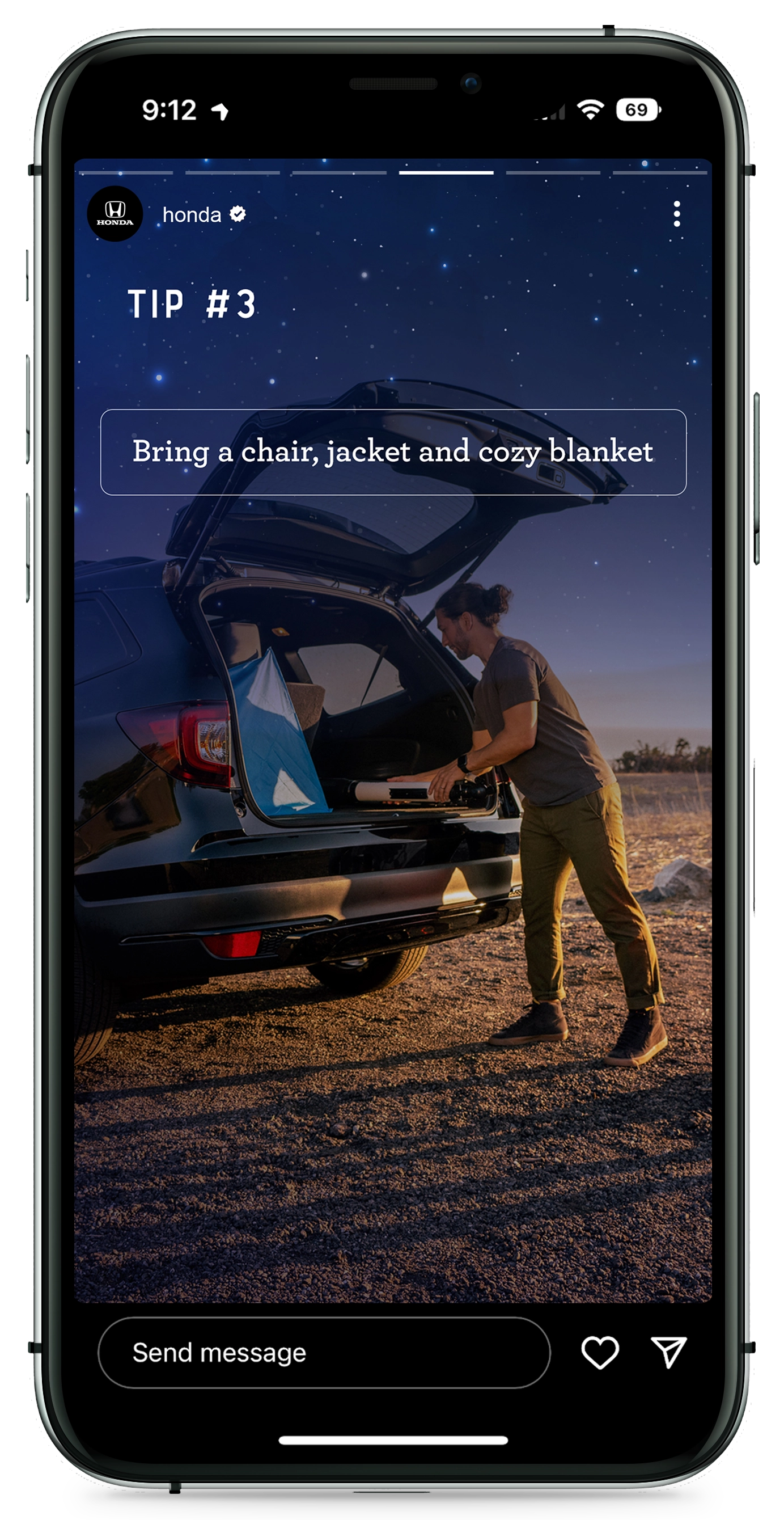 I had the opportunity to work on a variety of projects for Honda, contributing to seasonal campaigns and crafting social media content to strengthen their brand presence. From designing interactive Instagram Stories that encouraged user engagement to creating digital and print assets for seasonal campaigns, my work helped maintain a cohesive and visually appealing brand experience across platforms.